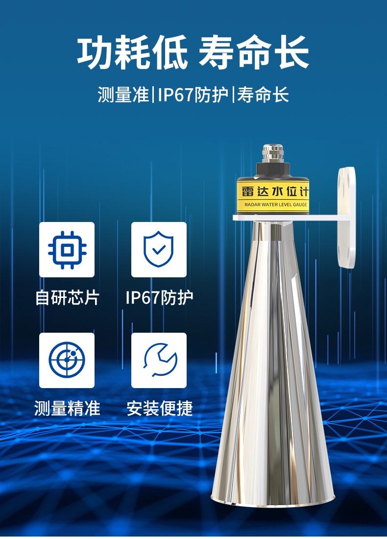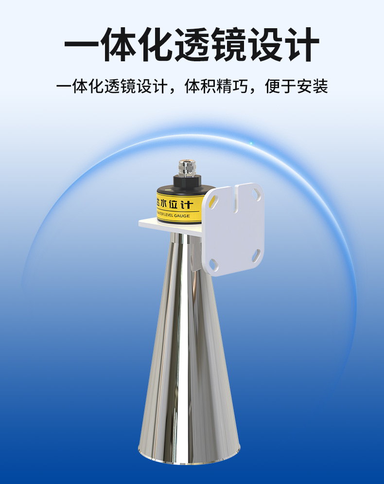 雷达液位计系列产品,是指工作在 76-81GHz 的调频连续波(FMCW)雷达产 品。产品最大量程 可以达到 70m, 盲区在 10 cm 以内。由于它工作频率更高, 带宽更大,测量精度更高。产品提供支架的固定方式,配合本公司水雨情立杆、 主机使用。