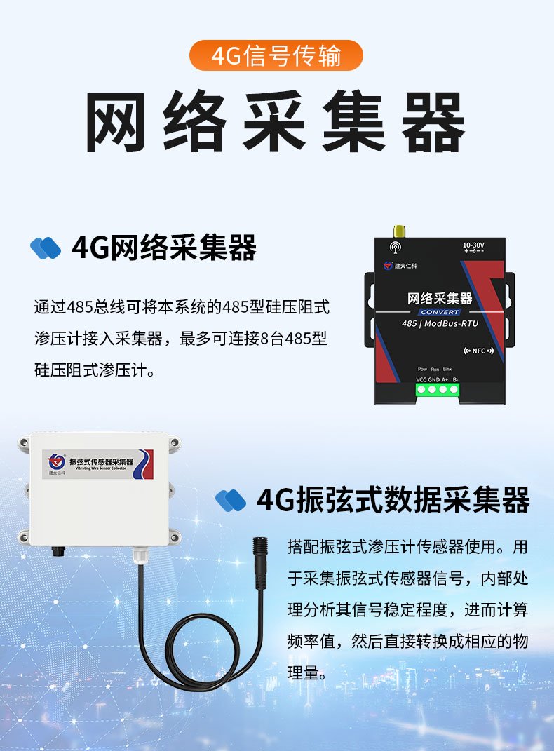 孔隙水压力监测站由“振弦式/硅压阻式渗压计、网络采集器、太阳能供电系统、安装支架、电控箱”等部件组成。实时采集“设计高程的孔隙水压力”,实现数据在线监测、曲线分析、远程预警等功能。可有效评价地基土的允许承载力、预测道路冻害的严重程度、基坑涌水量的大小和坑壁稳定性,以及检验坝基、坝肩防渗处理的效果。