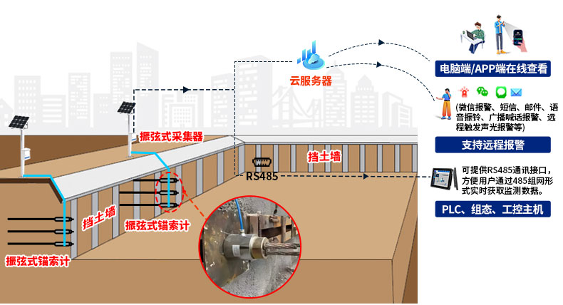 本方案依据国标要求,对基坑的支护结构受力情况、周围土体位移沉降情况、地下孔隙水压力情况进行全方位、高精度的实时在线监测。配合我司免费提供的监测预警平台,赋予基坑安全在线监测系统全天候的守护能力以及智能预警机制,政府主管部门、安全监督机构、各责任主体单位,通过系统能够及时查询辖区内在建工程基坑现场的监测数据,实现动态监管目的。