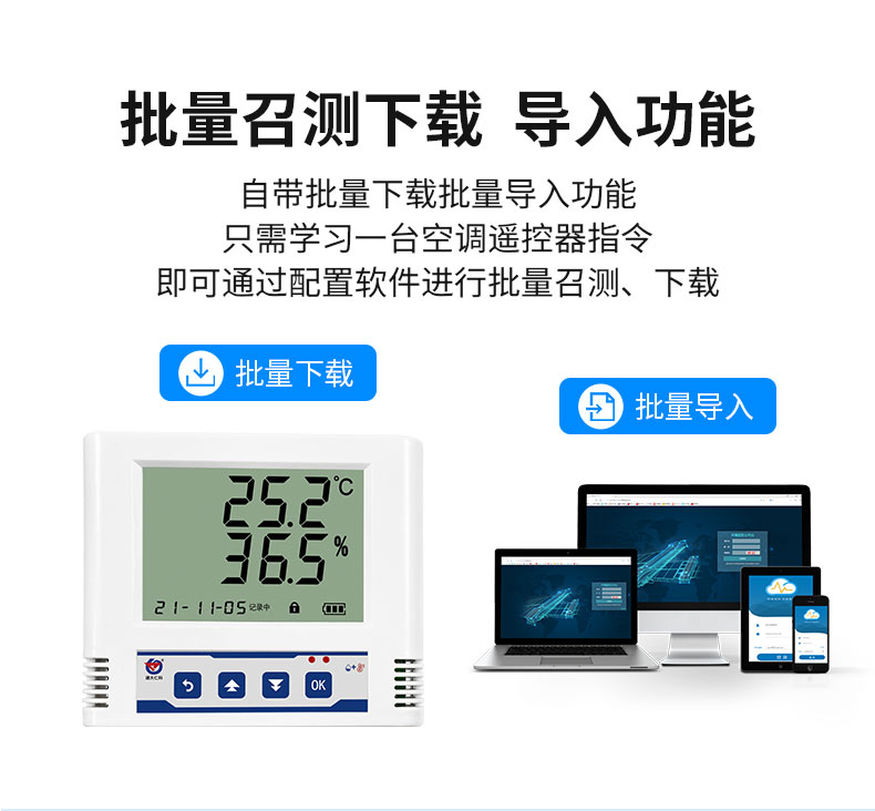 多功能学习型红外空调控制器可学习23组/60组空调遥控器指令,支持批量召测下载,支持双机轮换控制,脱机自动恒温控制,脱机定时恒温组合控制,支持远程控制空调启停,远程控制空调调温,远程监测空调状态,支持来电自启。RS485通信,ModBus-RTU协议,LCD液晶大屏显示,实时显示当前温湿度