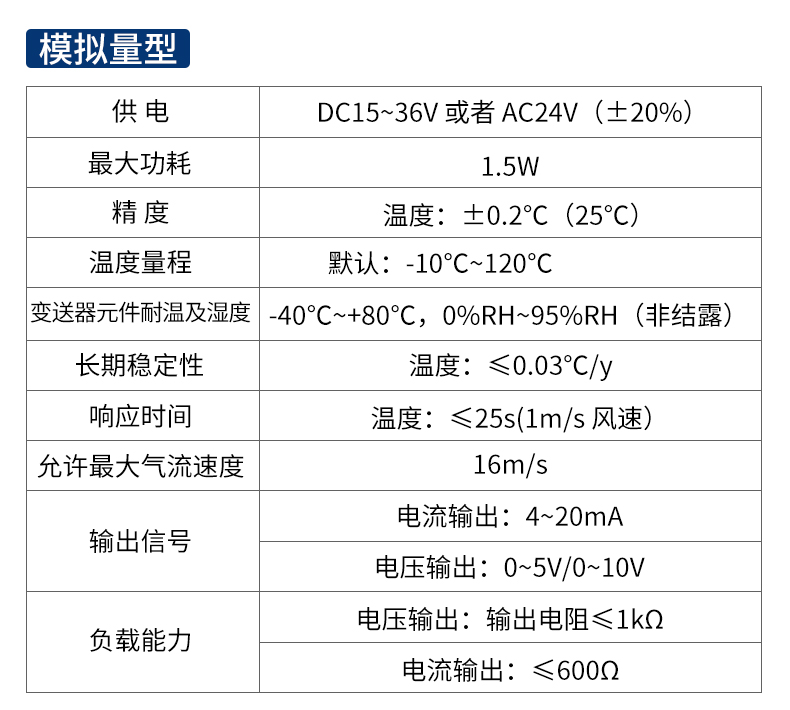 | 负载能力 | 24V供电时负载≤700Ω | |