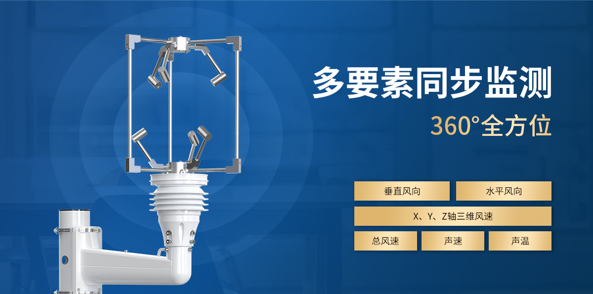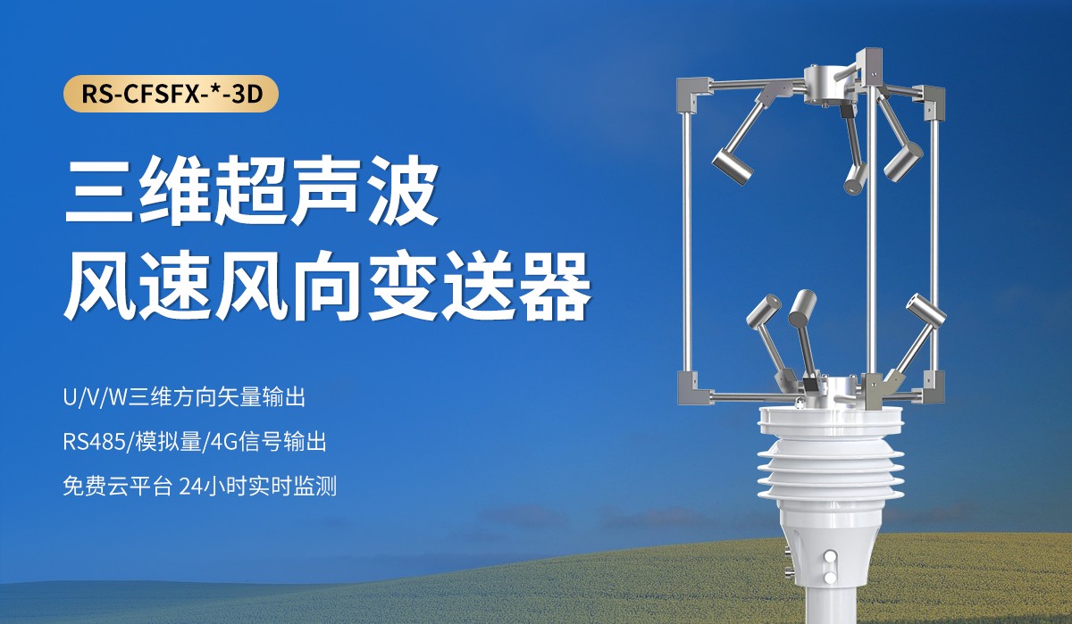 三维超声波风速风向传感器使用六个超声波探头在三维平面内循环发送和接收超声波,通过超声波在空气中传播的时差来测量风速和风向。可以同时测量风速,风向,声速和声温的瞬时数值。广泛适用于气象、海洋、环境、机场、港口、实验室、工农业及交通等领域。