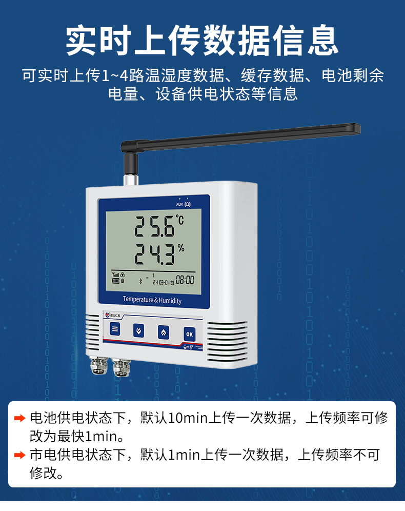 | 数据上传 | 4G进行数据上传,电池供电状态下数据上传间隔可设 电源供电状况下固定 1min上传1次 | ||