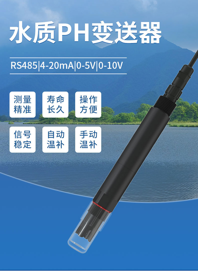 产品是一款测量溶液PH值(氢离子浓度指数、酸碱度)的设备,具有自动温度补偿功能,自动温补和手动温补可随意切换。本产品采用一体式设计,结构更加轻简,使用更加便捷。