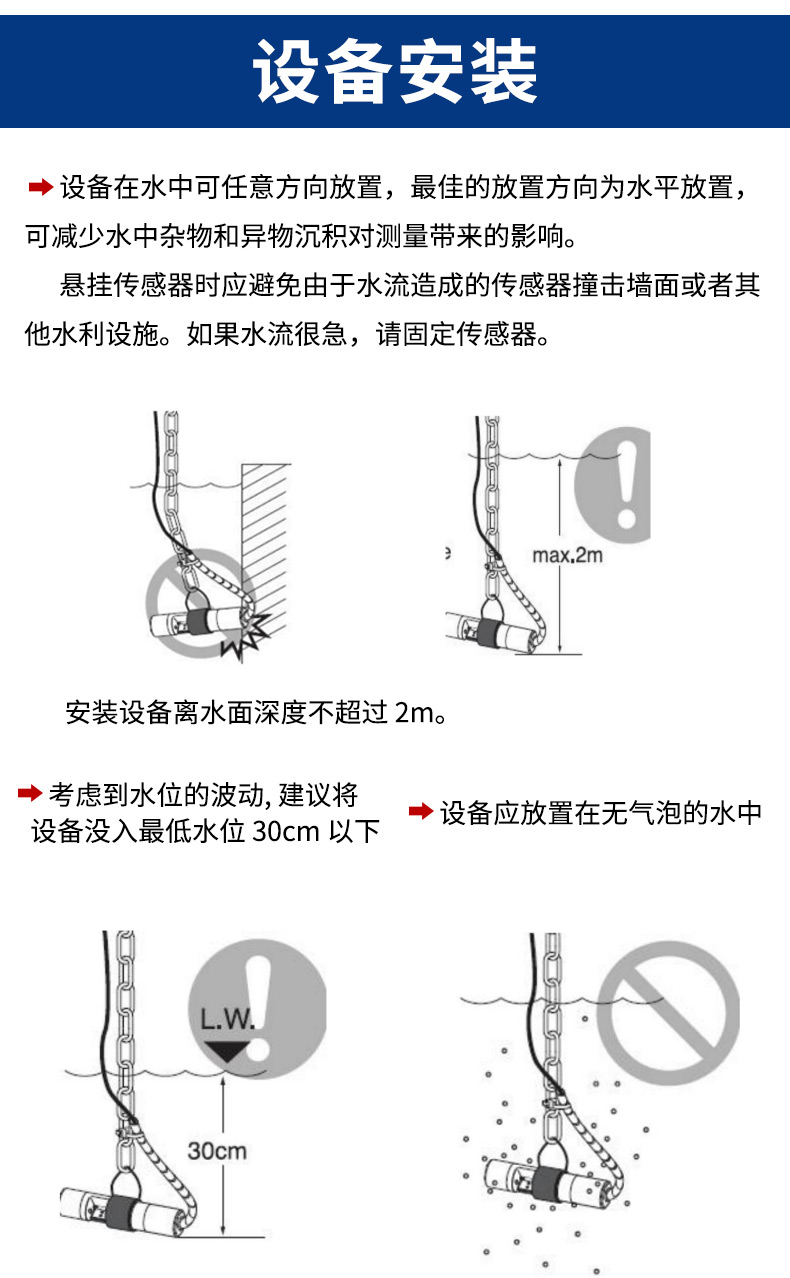 本产品是一款测量溶液悬浮物浓度(污泥浓度)的设备,采用光学测量方法,无需化学试剂;内部集成自清洁系统,有效防止生物附着;内置温度变送器,具有自动温度补偿功能;采用调制光信号,减少可见光干扰;可广泛应用于水处理、水产养殖、环境监测等行业。