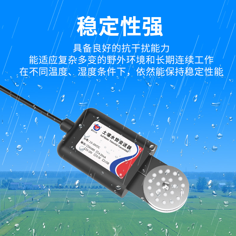 土壤水势传感器是一款专为测量土壤水势而设计的专业设备。运用先进的感应技术,通过内置的敏感元件与土壤水分建立能量平衡。当土壤水势发生变化时,敏感元件会感知到相应的压力或张力改变。通过实时监测土壤中水分的能量状态,以直观数据形式呈现土壤水分的有效性,帮助用户准确把握土壤水分状况,为科学灌溉、农业生产管理以及生态环境研究等提供关键数据。