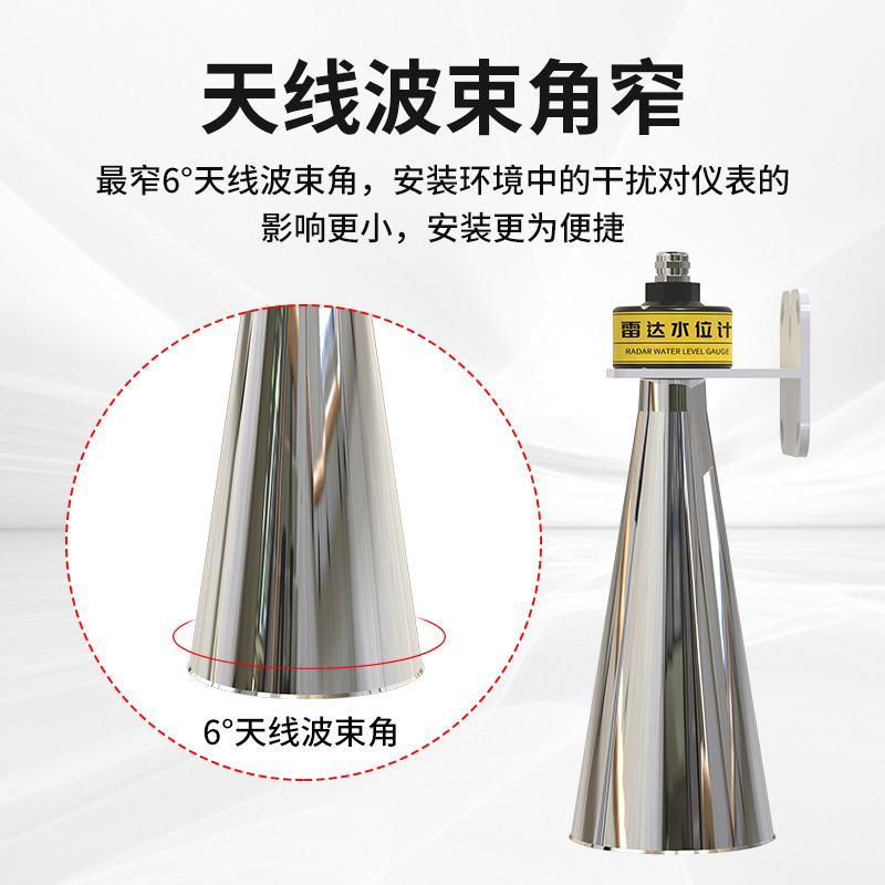 雷达液位计系列产品,是指工作在 76-81GHz 的调频连续波(FMCW)雷达产 品。产品最大量程 可以达到 70m, 盲区在 10 cm 以内。由于它工作频率更高, 带宽更大,测量精度更高。产品提供支架的固定方式,配合本公司水雨情立杆、 主机使用。