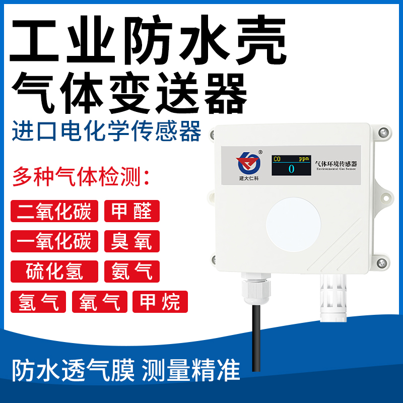该气体变送器采用壁挂防水外壳,安装方便;能够对空气中的二氧化碳、一氧化碳、氧气、硫化氢、甲烷、氨气、臭氧、甲醛、氢气以及其他气体的浓度值进行实时在线监测,并带有高品质 OLED 显示屏,现场可直接查看数值,夜晚亦可清晰显示。