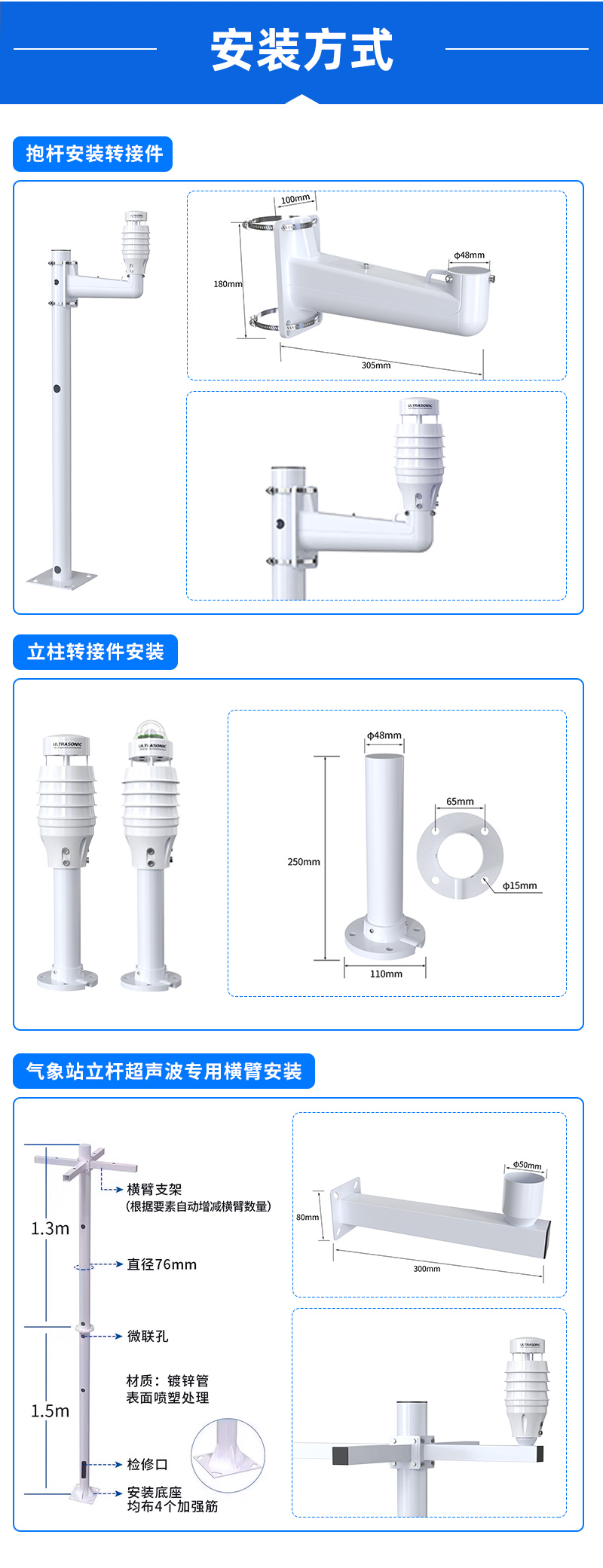 小型超声波风速风向变送器是一款基于超声波原理研发的风速风向测量仪器,采用40kHz超声波换能器,利用发送的声波脉冲,测量接收端的相位差来计算风速和风向,启动风速小,可以同时测量风速,风向的瞬时数值,广泛适用于气象、海洋、环境、机场、港口、实验室、工农业及交通等领域的风速与风向测量。