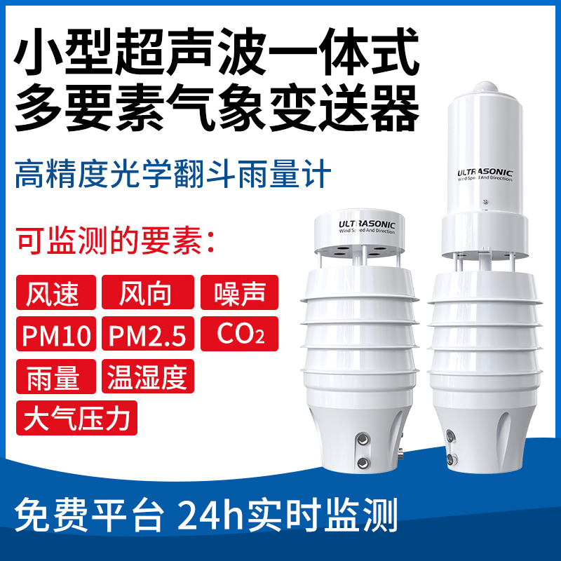 小型超声波一体式多要素气象变送器可广泛适用于环境检测,集风速、风向、温湿度、噪声采集、PM2.5和PM10、大气压力、光照于一体。内置电子指南针选型的设备,安装时不再有方位的要求,只需保证水平安装即可。适用于海运船舶、汽车运输等移动场合的使用。安装方便,经久耐用。