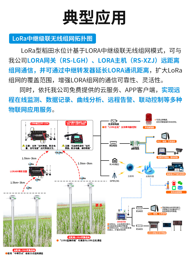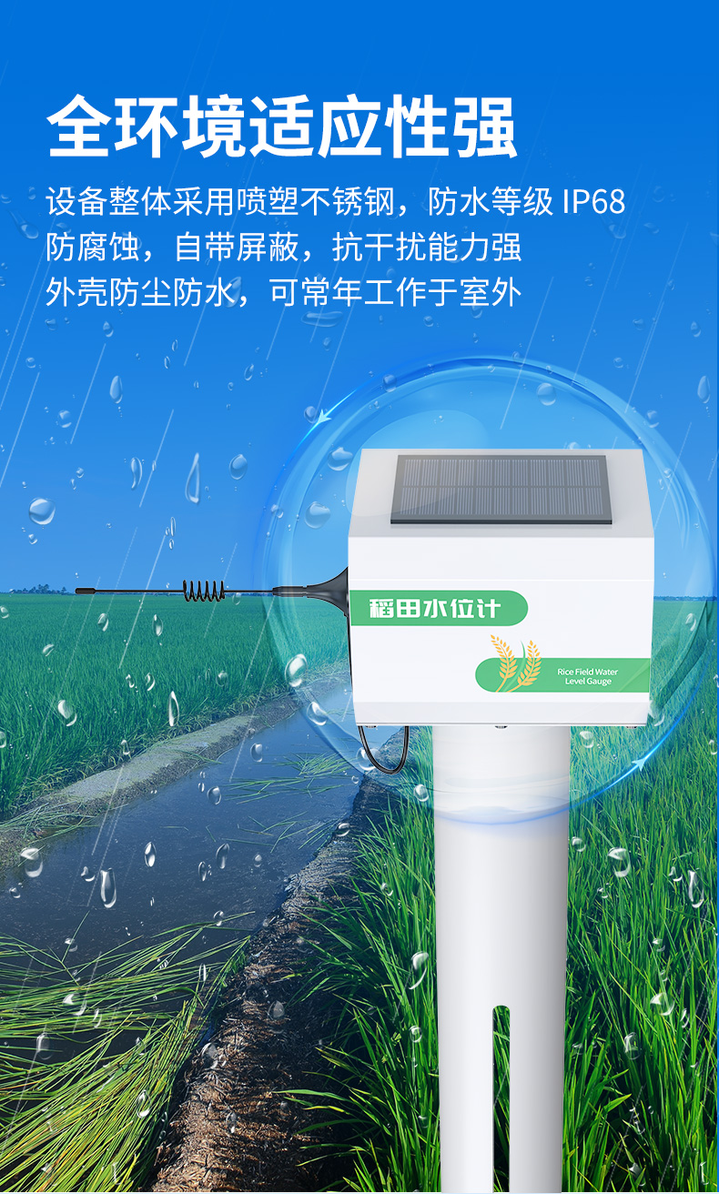 稻田水位计是一款用于监测稻田水位的设备。通过雷达传感器实时测量稻田水位,确保水位处于适宜范围实时测量稻田中的水位高度,并将数据传输给农民或农业管理者,以便及时调整灌溉和排水措施,提高稻米产量和质量。整体采用喷塑不锈钢,防水等级IP68,防腐蚀,自带屏蔽,抗干扰能力强,外壳防尘防水,可常年工作于室外。